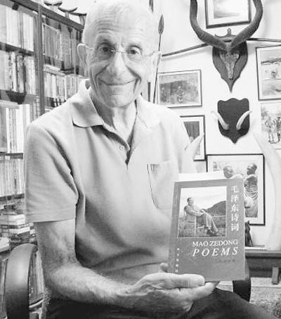 武大卫展示他的藏书之一《毛泽东诗词》,他非常喜爱这本书,在其中夹了不少笔记。本报记者 韩晓明摄