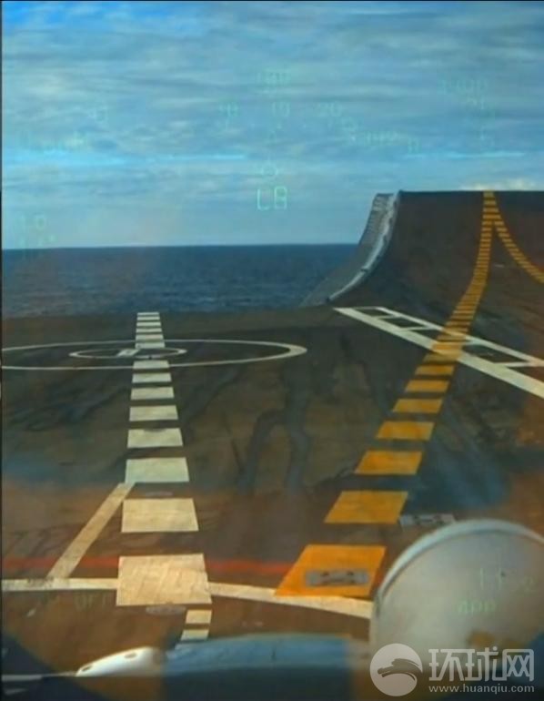 从米格-29K驾驶舱角度拍摄的舰载机降落维克拉马蒂亚号航母的过程