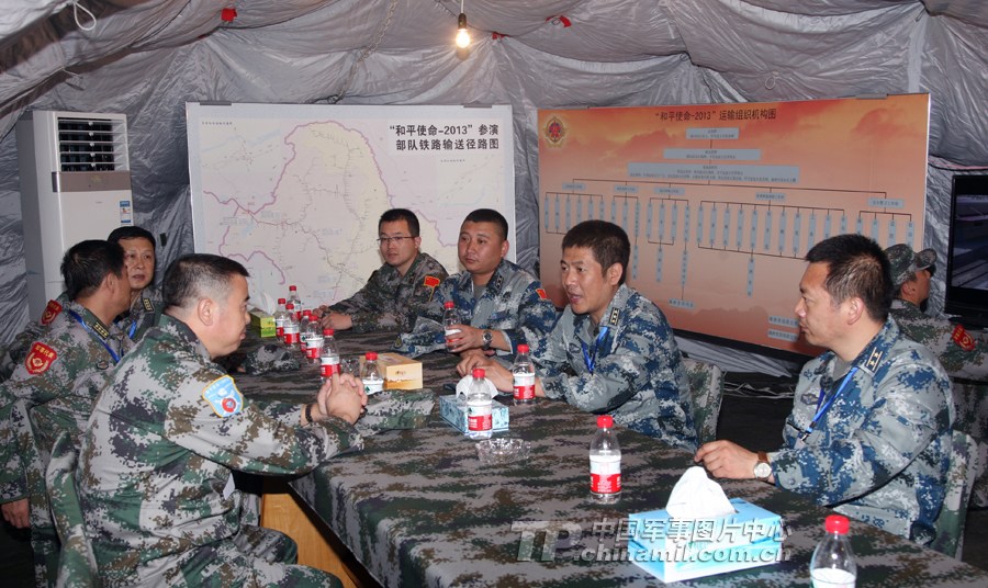 在临时指挥部中研究铁路运输路径图。 曹占礼 摄