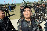 迎着清晨的第一缕阳光,年轻的士兵们又投入到紧张的备战之中。我很喜欢穿梭在他们列队的方阵之间,捕捉他们一个个生动的瞬间,不知不觉中,自己仿佛也年轻了许多。刚开始时,士兵们面对镜头还颇显腼腆,几天下来,他们已经开始“忽视”我的存在了,往往是我拍我的照片,他们练他们的队列。休息时,大家却对我打开了话匣子,肆无忌惮地说着阳光太毒的牢骚,没边儿地为自己流多少汗水吹牛,还七嘴八舌地和我讲述演习备战期间连队里发生的大事小事。