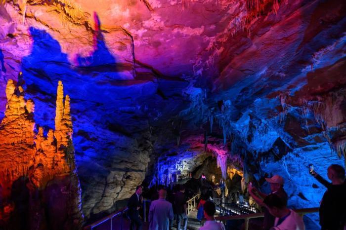 日前,一张溶洞篮球场的图片在网上走红,网友纷纷赞叹凉爽:酷炫! 这个网红溶洞篮球场就在贵州省毕节市纳雍县猪场乡新春村。的确,这是一个名副其实的酷炫篮球场,因为,篮球场自带空调。