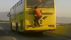 男童学蜘蛛侠扒车尾