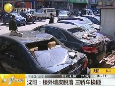 沈阳一楼外墙皮脱落 楼下三辆轿车被砸瘪
