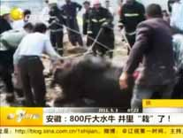 安徽:800斤的大水牛贪吃井边草 栽进井里