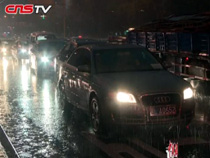 (采访重庆市海事局朝天门海事处江北嘴执法大队副队长孙谷:受近期连续降雨影响,出现了我们重庆长江干线水域以及我们嘉陵江水域都不同程度的有较大涨幅。嘉陵江水域洪峰是在二十四号的凌晨五点通过北碚段。由于水流速度加大,那么对进入嘉陵江的船舶上行能力以及调头操作都形成了很大的影响。)