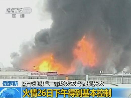 实拍俄罗斯华商市场遭遇火灾现场一片火海