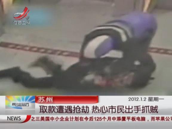 监控实录歹徒抢劫取款女子 市民见义勇为