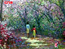 把中国的艺术和西方的艺术一种自然而然的汇总,是我多年来一直研究和耕耘的结晶,因为只要在海外,你在面对着超级强国和对我们这种过渡阶段的社会主义国家的艺术家来讲,所受到的有很多的偏差,对我们国家的文化自然而然也一样的。所以我作为一个艺术家来讲,我是很想能展示咱们的东方艺术,东方艺术的主要精髓在佛教艺术上,是一个很重要的组成部分,所以我就将中国的一些工笔画、工笔重彩和西洋的素描透视以及印象派的色彩把它融汇起来,形成一个石窟文化的艺术。
