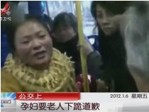 孕妇乘公交与老人冲突 逼白发老人下跪道歉