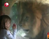 实拍:三岁女童面对雄狮不畏惧