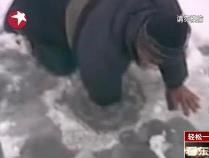 另类捕鱼 直接把手臂伸进冰窟窿当鱼钩