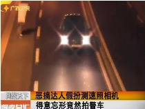 恶搞达人假扮测速照相机 得意忘形竟然拍警车