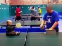 英国年仅1岁半宝宝坐球台上练乒乓走红