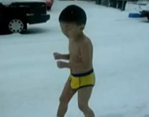 实拍:四岁“裸跑弟”雪中“裸跑”