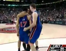 林书豪进攻遭“包夹” 血染赛场