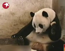 熊猫宝宝打喷嚏吓到熊猫妈妈