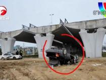 坑爹的高架桥让轿车直接翻下桥底