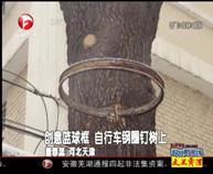 创意篮球框 自行车钢圈钉树上
