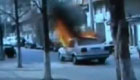 轿车行驶中起火 司机火中丧失