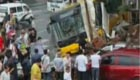 公交车失控撞倒厂房 14名乘客受伤