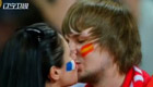 法国美女看台激吻西班牙男球迷