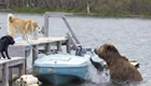 俄两只看家狗吓跑觅食大棕熊