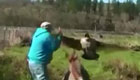 实拍:大叔喂驴 鹅嫉妒发起攻击