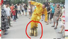 男子练武功穿600斤铁鞋行走