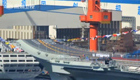 中国航母平台悬挂满旗铺红毯