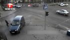 监拍车辆相撞横飞 三人奇迹躲过一劫