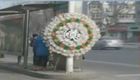 寿衣店公交站台摆花圈做广告给司机"添堵"