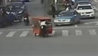 实拍交警拦三轮车检查被拖拽40米