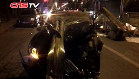 拍客:北京一公交站被私家车撞翻