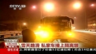 江苏大雪致路滑 私家车撞隔离墩