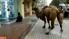 实拍:绍兴男子街头牵骆驼下跪乞讨