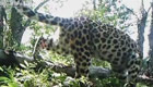 实拍:野生东北豹镜头前挠相机