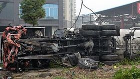 湖南一液化槽罐车翻倒桥下 数千人疏散