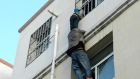 实拍:男子悬空40分钟托举被困男孩