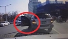实拍女司机倒车不慎摔出车外
