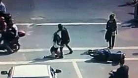 监控视频:女孩被撞倒反遭暴打
