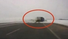 大卡车失控惊险瞬间 车头车身对折