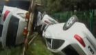 司机打瞌睡翻车 载13辆奥迪报废损失百万