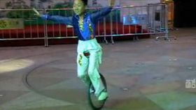 10岁男童骑独轮车跳绳