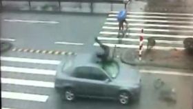 监拍:男子斑马线被撞飞瞬间
