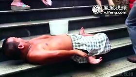 男子赤背“贴地爬行”台阶 路人无视