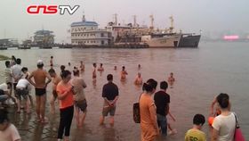 多地持续高温 武汉江滩变浴场