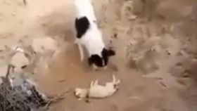 拍客:小狗把死去的同伴埋葬