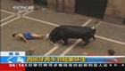 西班牙奔牛节险象环生:男子被顶掉裤子