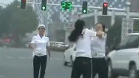 实拍:唐山两女交警马路中央厮打