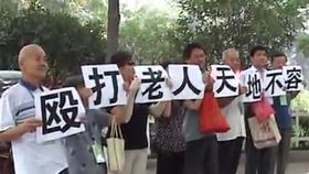 老人遭年轻人暴打 众老人举牌抗议